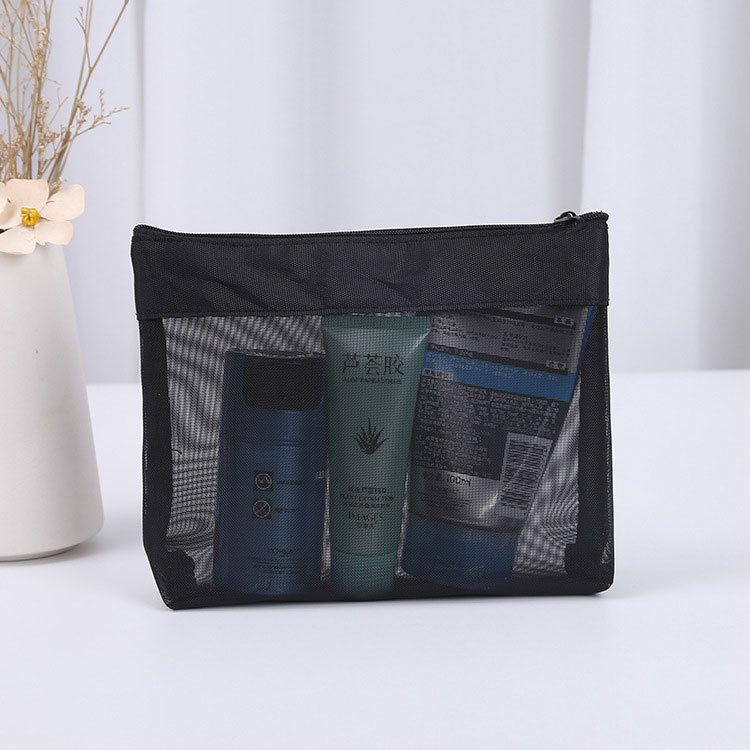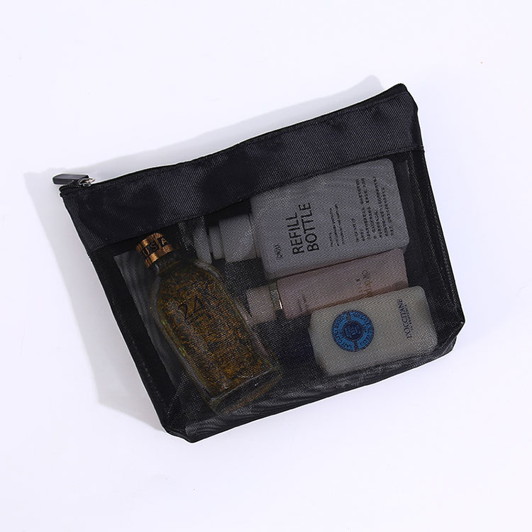 Dit soort make-uptas van zwart gaas is doorzichtig en ademend. Je kunt gemakkelijk zien wat er in zit en de spullen erin zijn makkelijker te drogen.