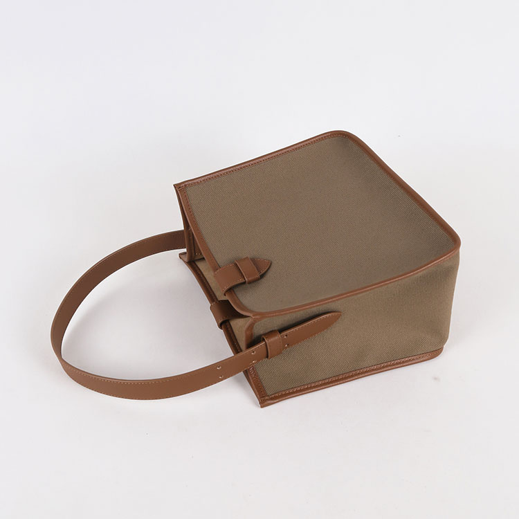Deze canvas draagtas met platte vorm is ontworpen met handvatten van PU-leer die stevig zijn en ervoor zorgen dat u zich comfortabeler voelt als u hem in uw hand draagt.
