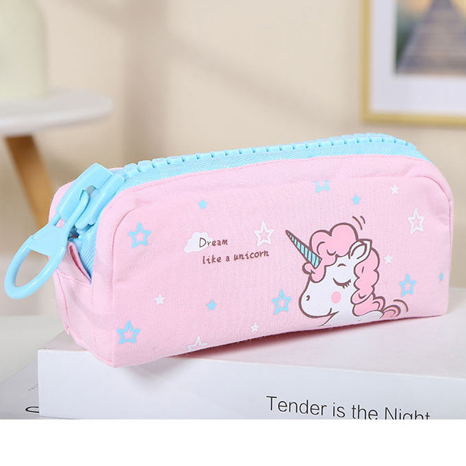 Er zijn verschillende kleuren canvas pennenzakken met ritssluiting waaruit u kunt kiezen. Er kunnen vele soorten briefpapier in waar kinderen dol op zijn, zoals potloden, pennen, kladblokken, correctietapes, gummen, linialen enzovoort. Gemakkelijk op te bergen en handig om spullen uit de tas te halen.