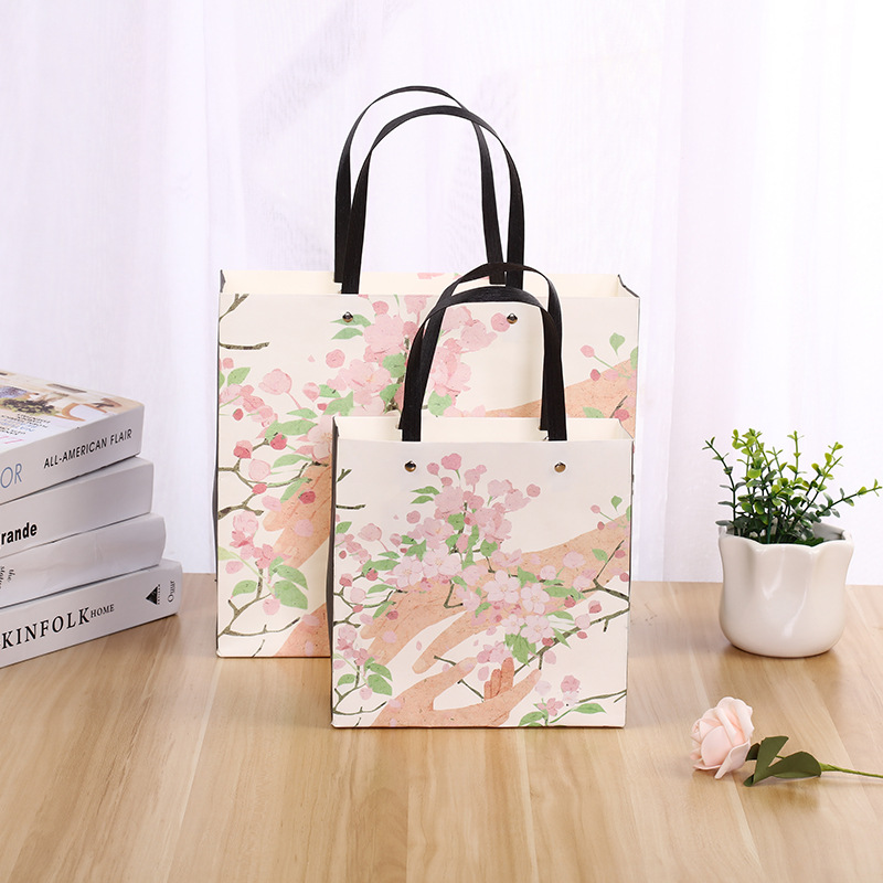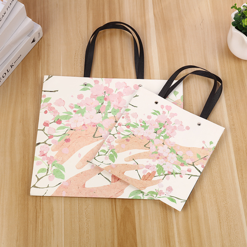 Ze zien er mooi uit en kunnen worden gebruikt om artikelen van klanten te verpakken. De papieren cadeauzakjes met kleurenprint zijn aan de onderkant verstevigd, zodat ze steviger zijn en niet gemakkelijk kapot gaan. Er zijn drie maten om uit te kiezen en we accepteren ook aangepaste formaten.