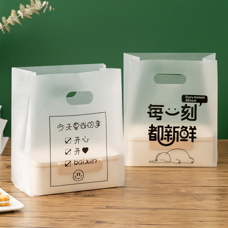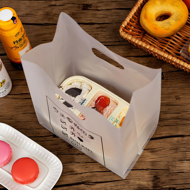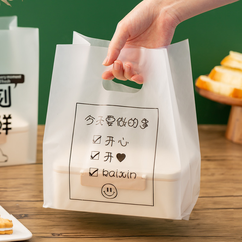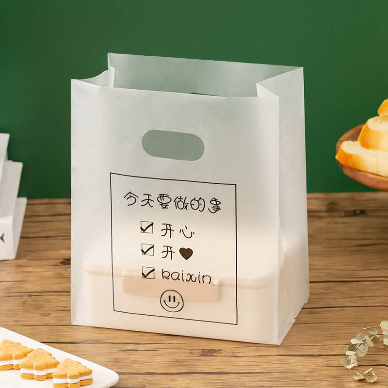 Er zit een vierkant gat in de bovenkant van de afbreekbare PE-zak om de tas te dragen. Het is erg handig voor het meenemen van cakebekers of sandwiches. Het is ook erg goed voor lunchboxen.