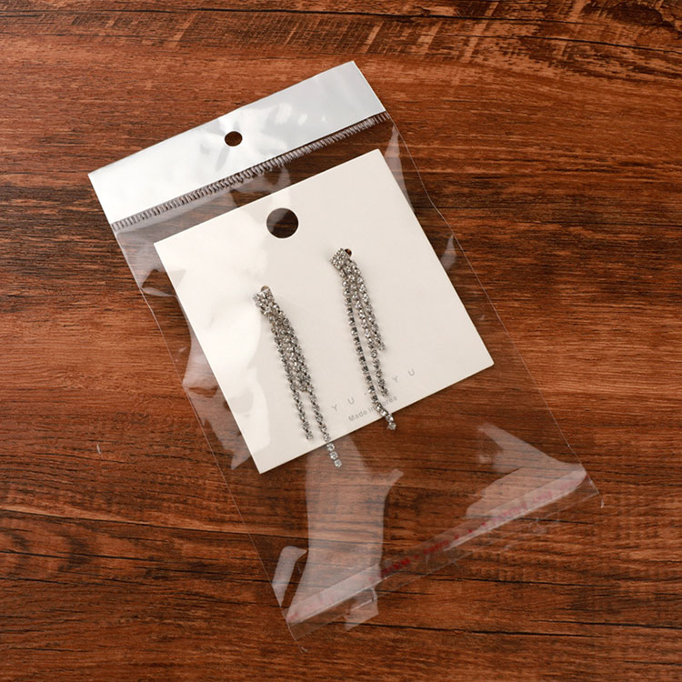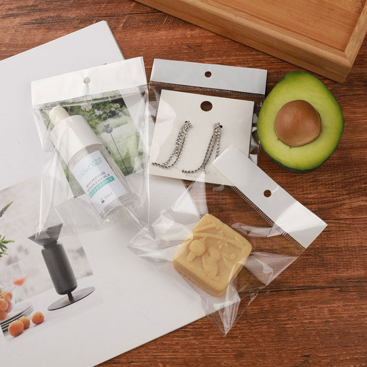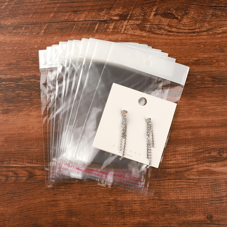 De OPP Head Card Bag is handig om op te bergen en de stijl is eenvoudig. De verpakte producten zullen er beter uitzien met de doorzichtige zakken, vooral voor juwelen zoals oorbellen, hangers, ringen enz. Het printlogo op het hoofdgedeelte van de opp-kaart of op het lichaam van de tas is beide oké. Wilt u uw eigen logo bedrukken om uw naamsbekendheid te vergroten, dan kunnen wij de tassen bedrukken.