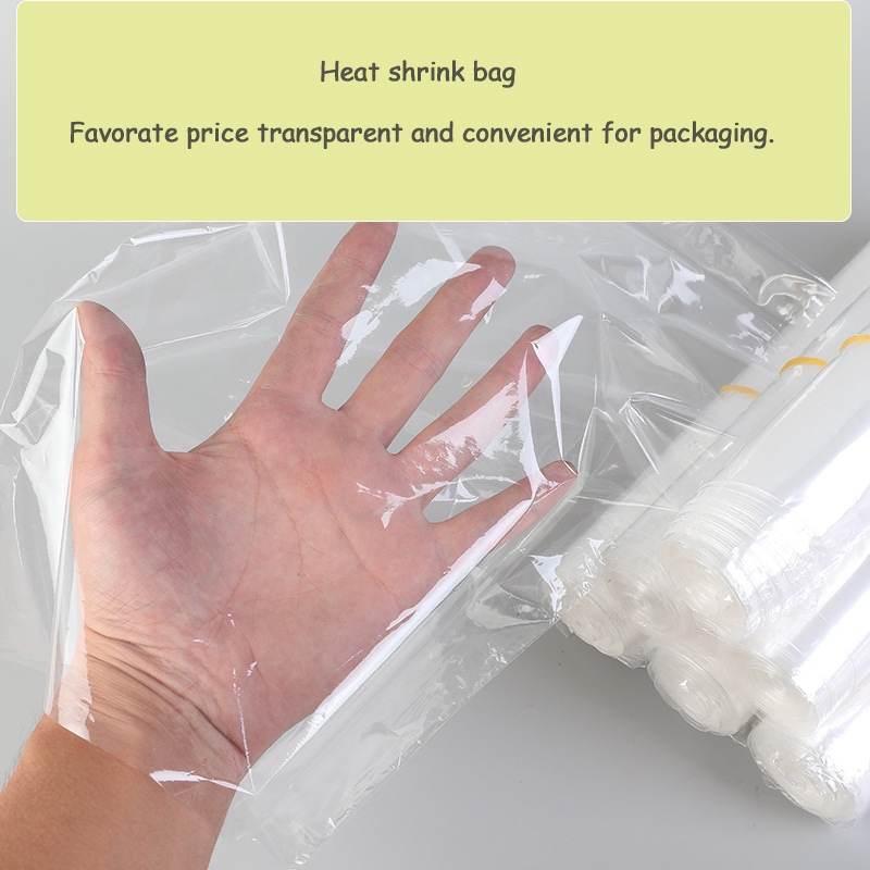 Doorzichtige PE-krimpzak kan zeer goed worden afgesloten met een hittegereedschap of föhn, het is geschikt voor gebruik in het dagelijks leven. Verschillende soorten maten kunnen aan uw verschillende behoeften voldoen. De krimpzak is gemakkelijk om voedsel en producten in te pakken en op te slaan.