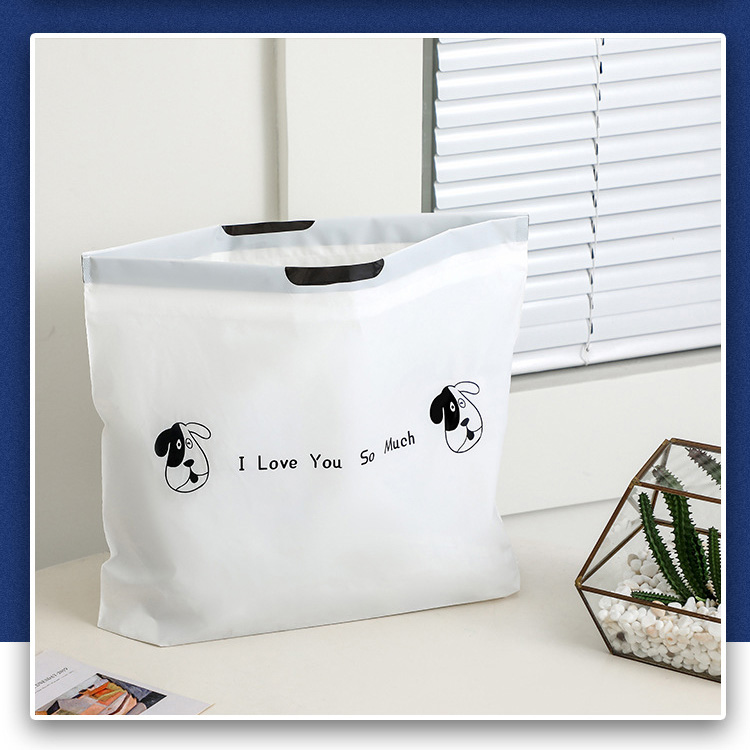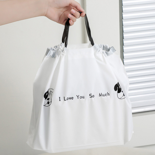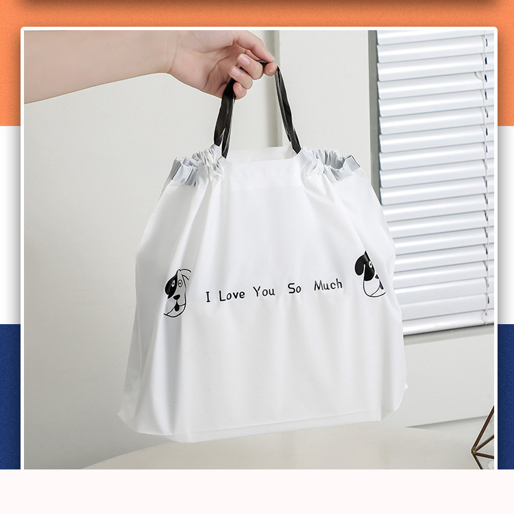 De tas is een witte kleur, die er eenvoudig en schoon uitziet en er zijn twee kleine honden op de zakken bedrukt, waardoor de tas niet monotoon en er schattig uitziet. Als je het als een cadeaubas gebruikt, de tekst "Ik hou zoveel van je" in het midden, toon gewoon je liefde voor je familie of vrienden, waardoor ze zich warm voelen.