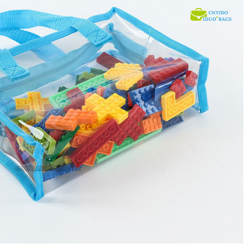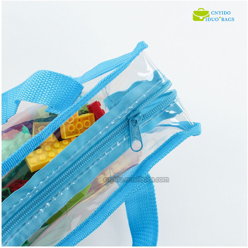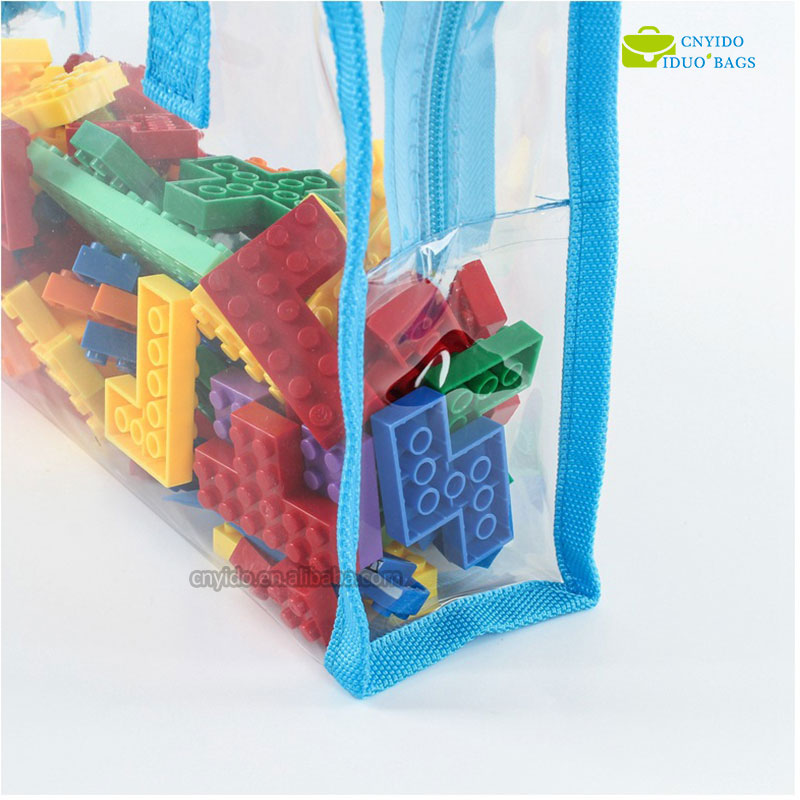 DePVC-boodschappentas met ritssluiting is ontworpen om twee zijden en één bodemplaat te hebben die voldoende goederen kan bevatten. Goed om te winkelen of kinderspeelgoed in op te bergen.
