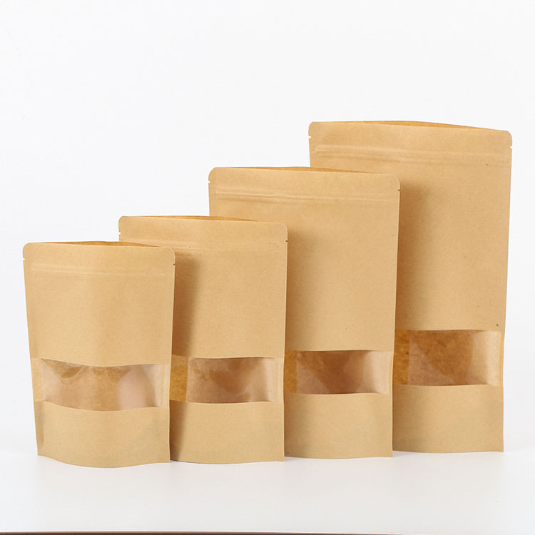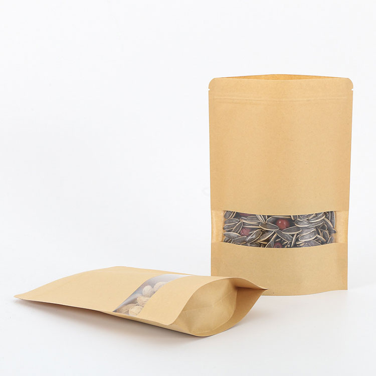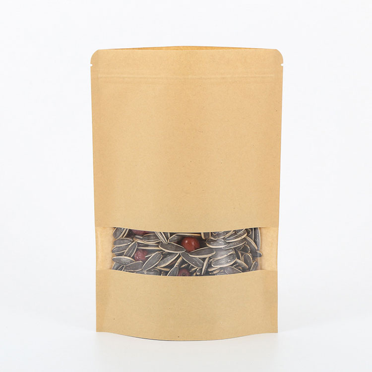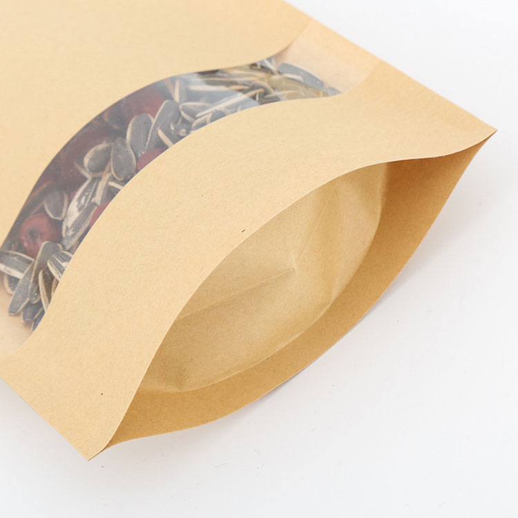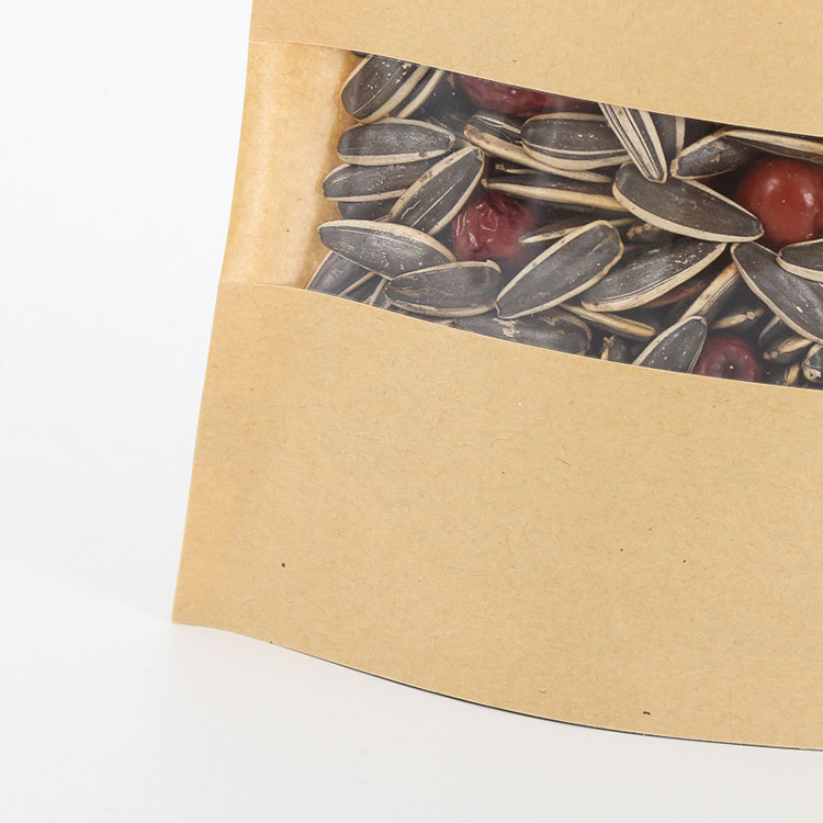 Elke zelfstandige zak van kraftpapier wordt geleverd met een rechthoekig, mat venster waarmee u gemakkelijk kunt zien wat er in de zak zit en zo tijd bespaart. Het heeft een bodem, zodat het voedsel rechtop kan blijven staan.