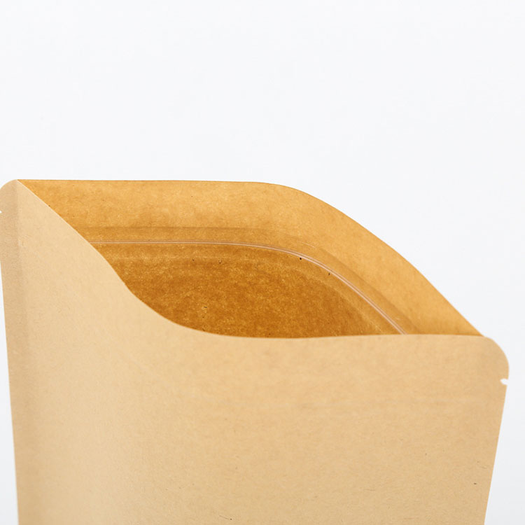 Heat seal-functies bieden volledige bescherming voor uw voedsel en zijn gemakkelijk te scheuren, waardoor de zak gemakkelijk kan worden gescheurd. Hersluitbare ritsen op zelfstaande zakken van kraftpapier zijn voldoende om te voorkomen dat uw voedsel eruit valt.